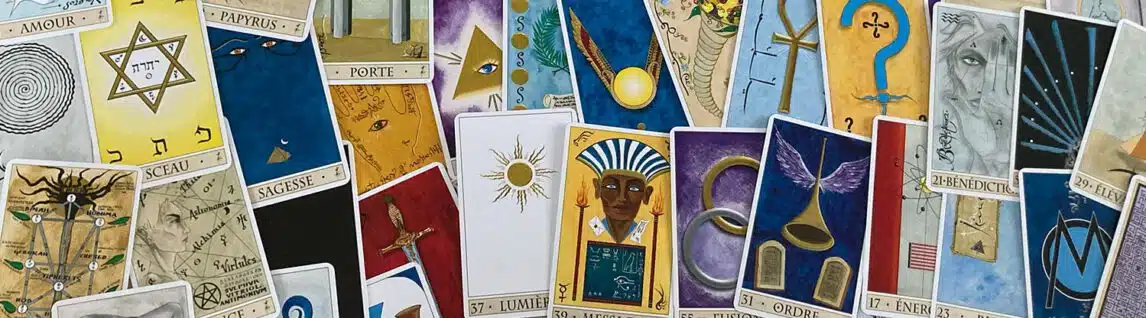 Après avoir battu et coupé le jeu, retournez les cartes par paires jusqu’à faire apparaître celle qui correspond au thème de votre question.