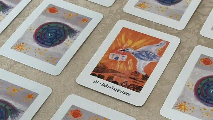 La carte Déménagement est généralement positive. Elle symbolise un changement concret, un passage vers une nouvelle étape de vie. Ce mouvement peut être matériel (nouvelle habitation) ou symbolique (évolution intérieure). Elle traduit le besoin d’air neuf, d’ouverture et de transformation stable.