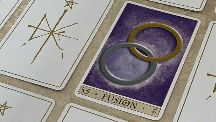 La carte Fusion dans l’Oracle de la Triade symbolise l’union, la complémentarité et l’harmonisation des contraires.