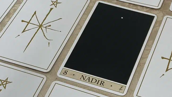En résultat, Nadir annonce un point de bascule : atteindre un seuil symbolique qui prépare à une remontée. Cette carte ne représente pas un échec final, mais un moment de vérité où tout ce qui n’est plus fonctionnel se révèle clairement. Elle peut annoncer une libération, une prise de conscience profonde ou la fin d’un cycle qui permet d’ouvrir un espace nouveau. Une autre hypothèse suggère que l’on gagne en force intérieure après avoir fait face à ses propres limites. Le résultat promet un renouveau, mais seulement après un passage nécessaire par l’essentiel, sans artifice ni déni.